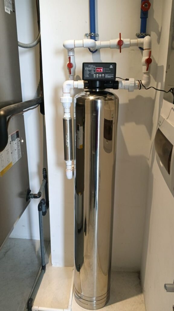 La planta se conecta a la tubería principal, permitiendo que toda el agua del hogar pase por el sistema de filtración.